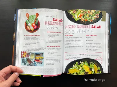 Find inspiration without rigid recipes. With templates for 9 everyday whole foods and 6 cooking techniques (only 3 use actual heat!), you’ll have ideas you can adapt to what’s in season, on sale, local, or simply what you’re craving. It’s about freedom and confidence in the kitchen, not following rules to the letter.